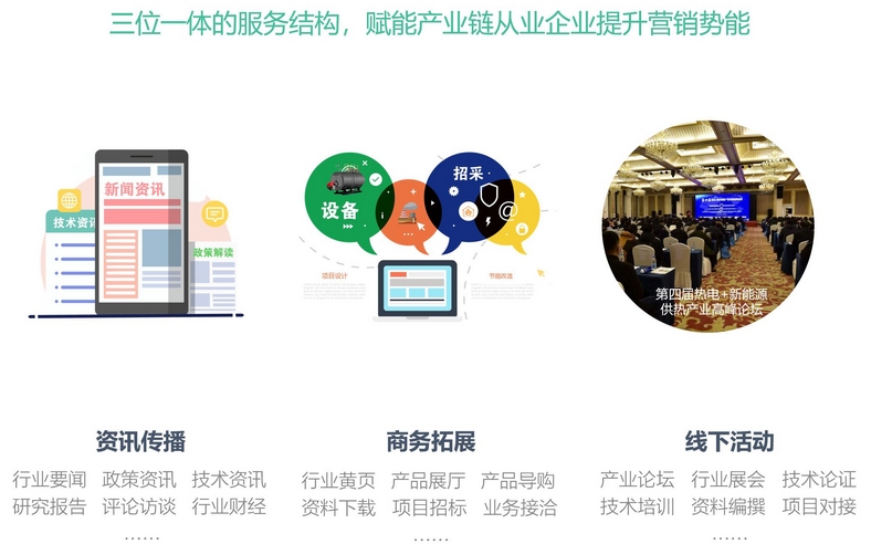 中能供熱網(前身為中國熱電產業(yè)網,由中國節(jié)能協(xié)會熱電產業(yè)聯(lián)盟創(chuàng)建于2012年),專注于供熱行業(yè),涵蓋熱電、暖通、能源、節(jié)能、環(huán)保垂直領域的行業(yè)門戶平臺,通過網站、手機版、APP、小程序、微信公眾號等實現多端一體的業(yè)務模式,為業(yè)內人士及企業(yè)提供資訊傳播、會議論壇、產業(yè)培訓、職業(yè)教育、電子商務等服務。
