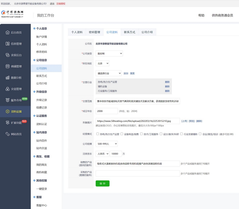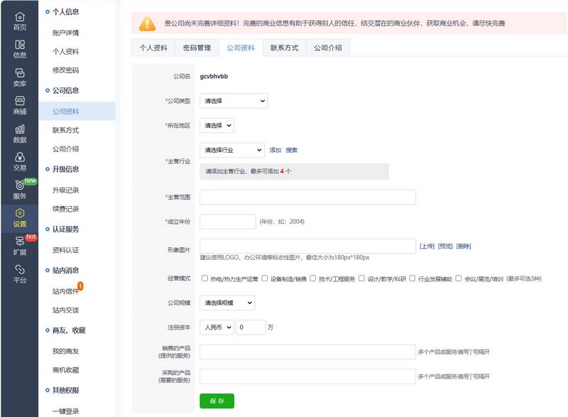 上邊那一行—— 公司資料 | 聯(lián)系方式 | 公司介紹 ——這三個標(biāo)簽挨個點擊填完吧!