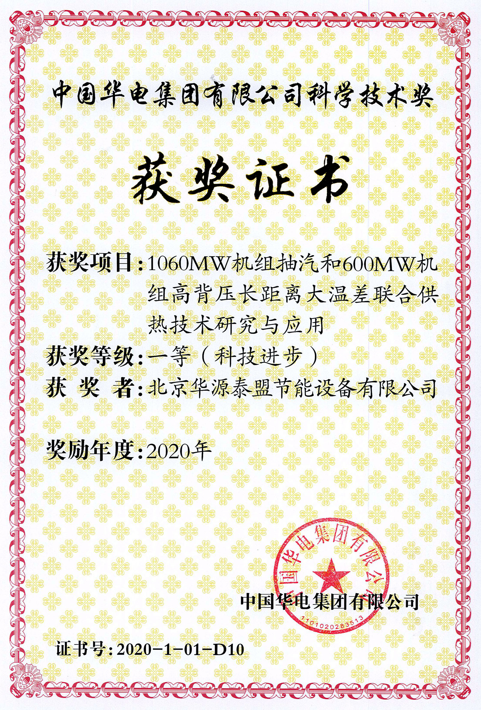 | 發(fā)證機(jī)構(gòu) | 中國華電集團(tuán) | 發(fā)證時間 | 2020-01-01 |