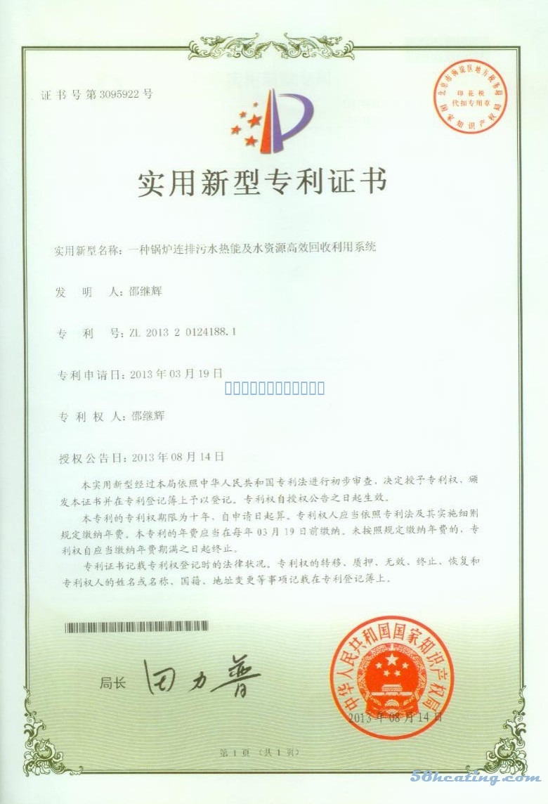 實(shí)用新型專利證書