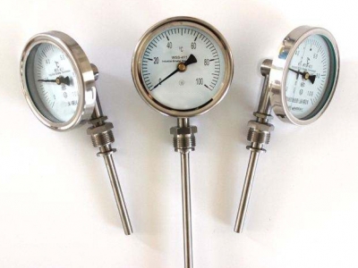 雙金屬溫度計(jì)是基于繞制成環(huán)性彎曲狀的雙金屬片組成。一端受熱膨脹時(shí),帶動指針旋轉(zhuǎn),工作儀表便顯示出所應(yīng)的溫度值。